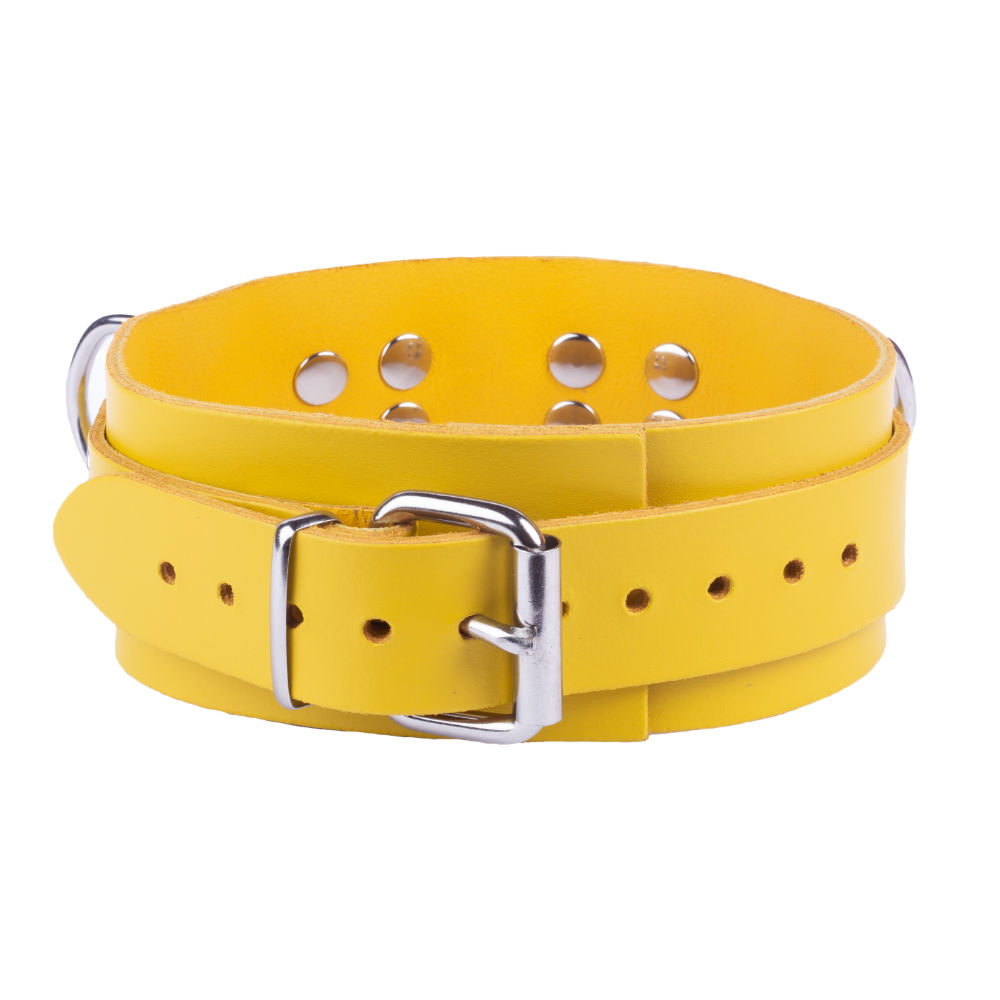 With this high-quality real leather collar, you can let all your SM fantasies run free! The collars come in different colors, so you can make exactly the statement that suits your dirty mood! Like with this lush shade of yellow!