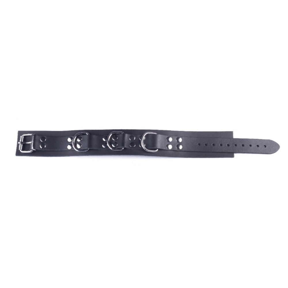 The collar has a total length of 55 cm and a width of 6 cm. You can easily and playfully adjust the diameter you need for perfect fit. A minimum diameter of 10 to a maximum of 15 cm can be achieved. There are also 3 O-rings on the collar, perfect for letting someone quickly lead you on a leash!
