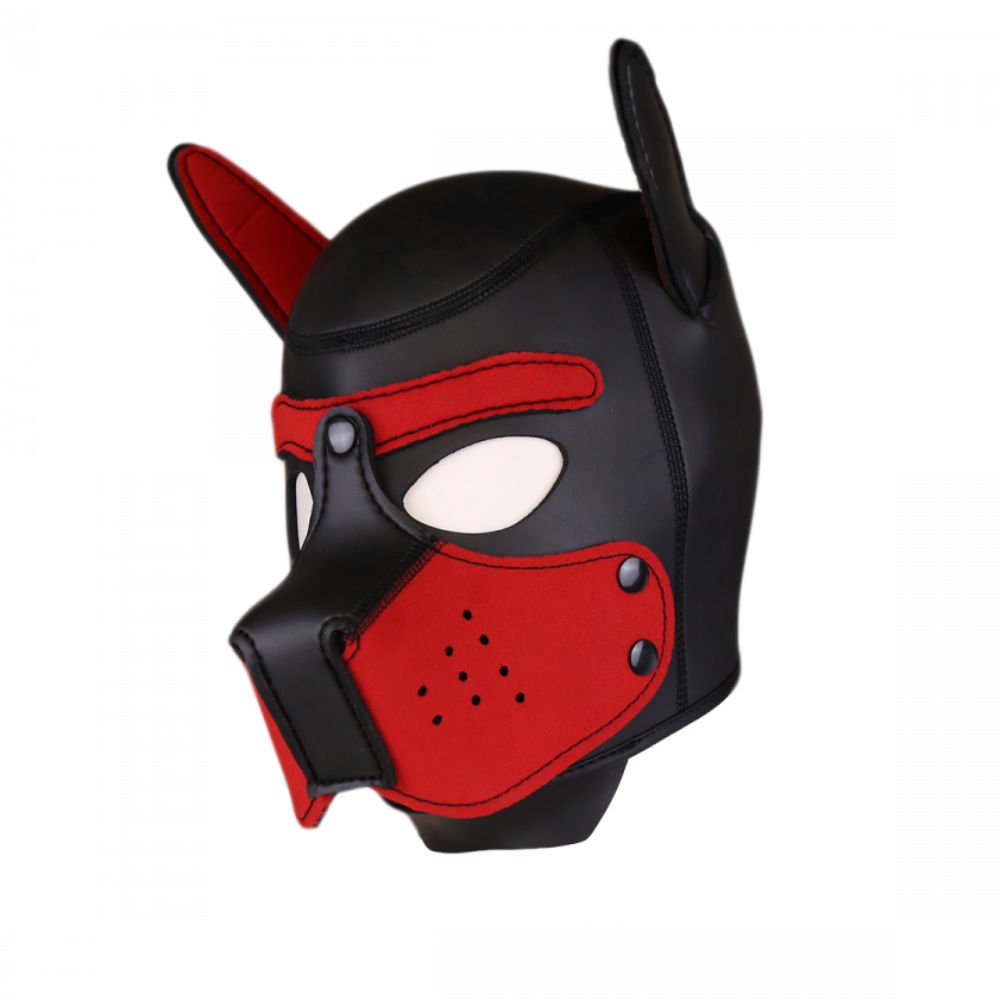 Fulfill completely new roleplay fantasies with this wild puppy mask with muzzle! It's not just perfect for little submissive pooches;, but it can also be used on an alpha adult dog to remind him of his place and to discourage barking and biting.