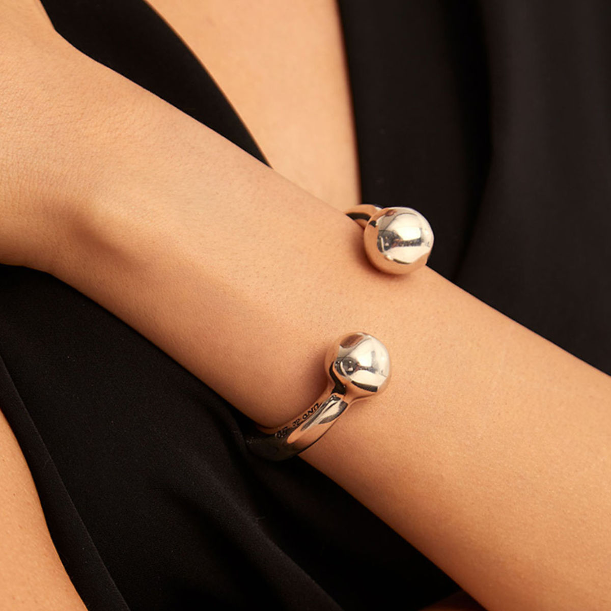 The barbell bracelet is an absolute eye-catcher! The massive piece of jewelry is made of stainless steel and will add the finishing touch to your outfit. To put it on, you can simply unscrew a ball and you have this cool accessory on your wrist.