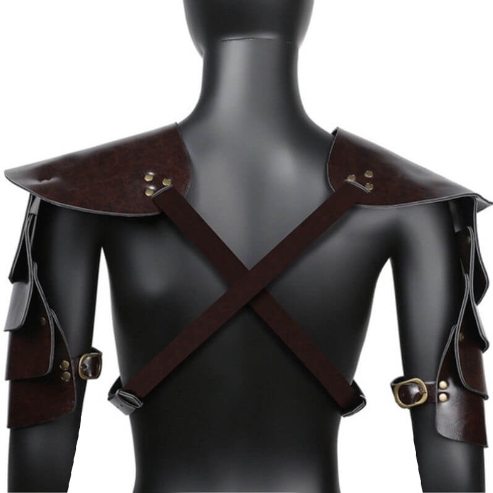 This harness has the usual cross construction, but the special highlight are the shoulder and arm plates, which are based on real armor pieces.