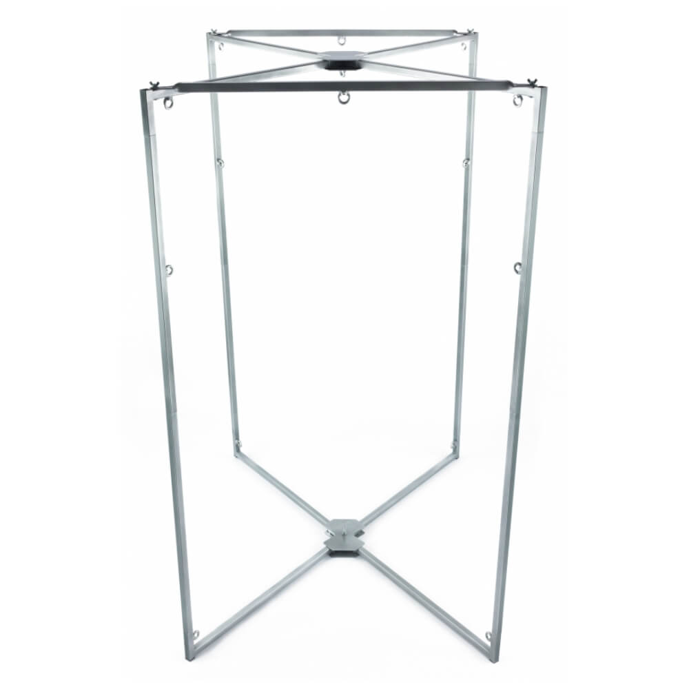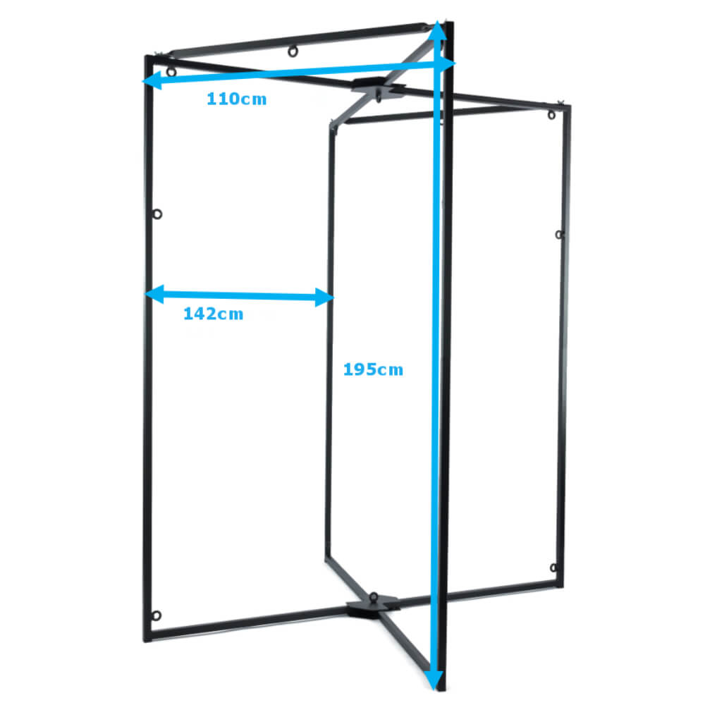 The frame is precisely constructed and very robust to carry loads of up to 140 kg. The frame has a footprint of 142 cm x 110 cm and is 195 cm high.