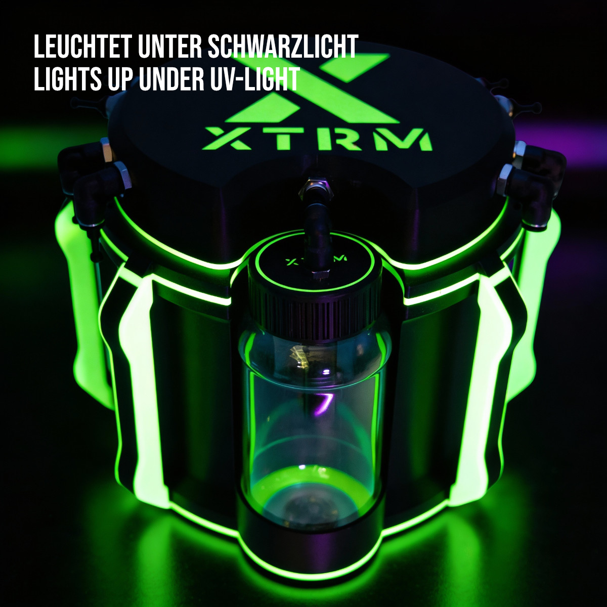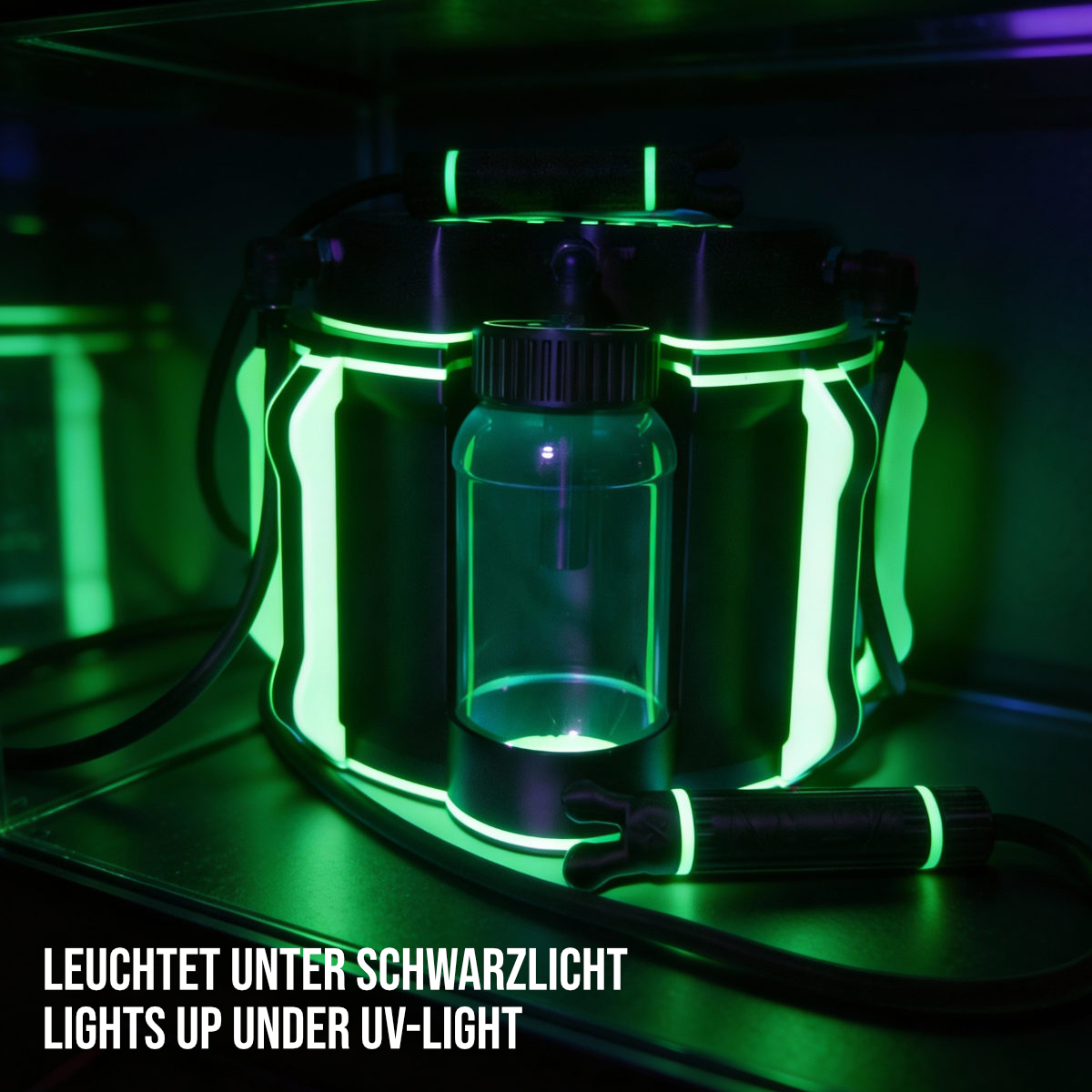 Visually, the Big Bang Station is in a class of its own: The futuristic housing glows with a glow-in-the-dark finish that immediately catches the eye and stays with you in dark rooms. And then there's the real highlight: an integrated LED strip beneath the main tank puts light exactly where it matters. You can see what's going on at all times, even in minimal ambient light or complete darkness.
