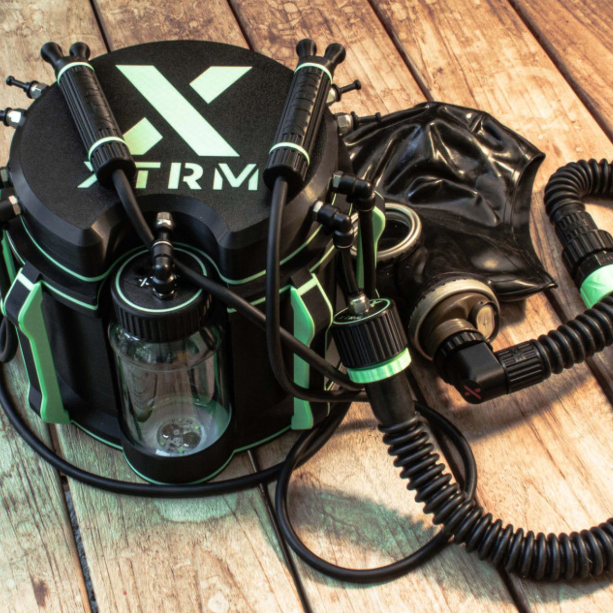 Up to eight users can be connected simultaneously, either directly via sniffers or with additional mask accessories. Thanks to the generous hose lengths (1.20m per channel), freedom of movement is maintained. Additional hoses or other poppers accessories can be connected via the adapter ports. Perfect for professional dungeons or intense breathplay scenarios.