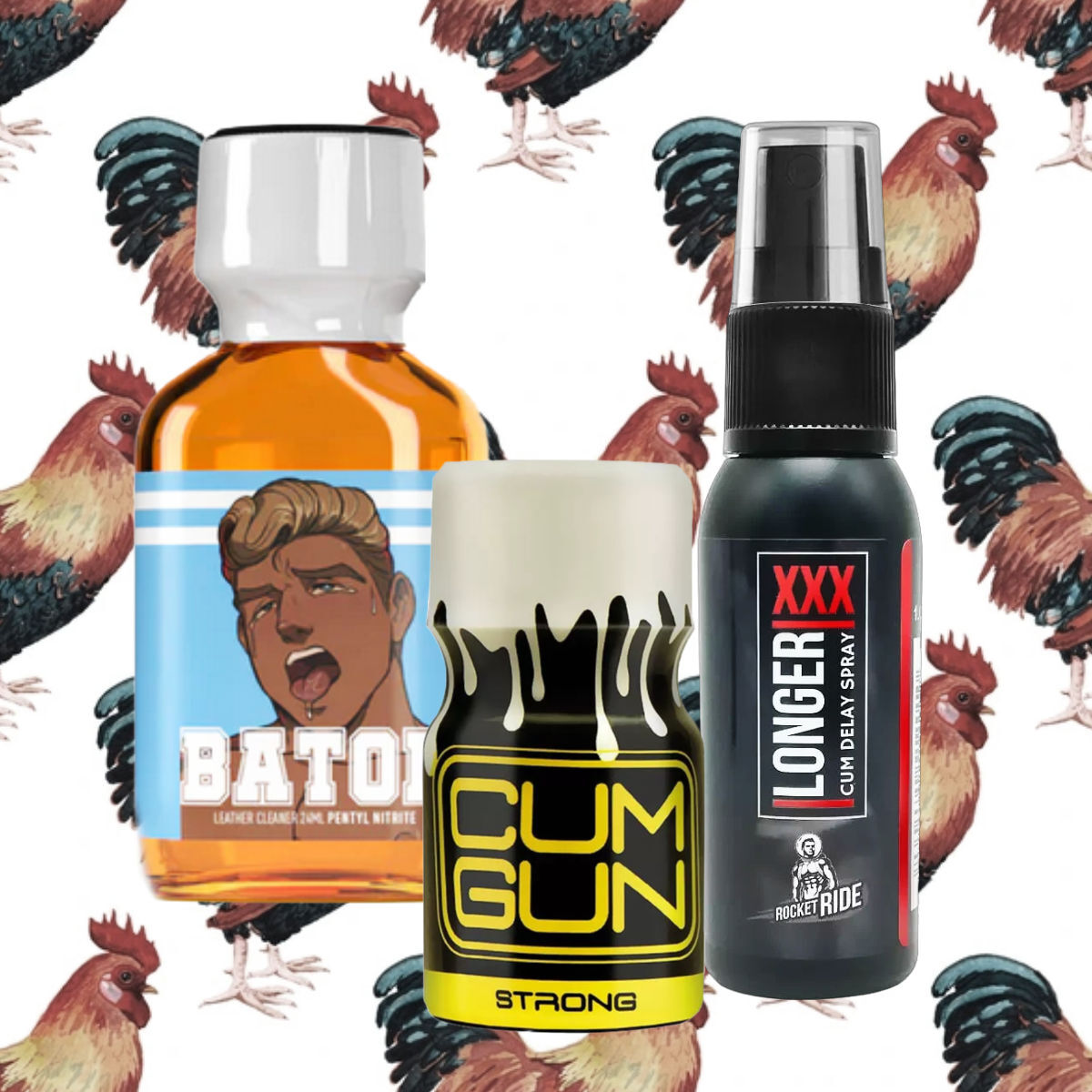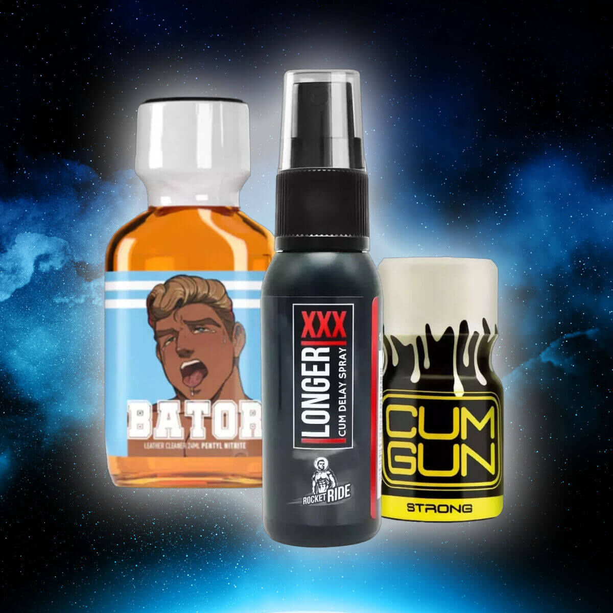 The Cock Captain Kit gives you 2 poppers that you can inhale deeply while pleasuring your cock to the maximum. And with our included Delay Spray you can prepare for long-lasting moments of pure pleasure!