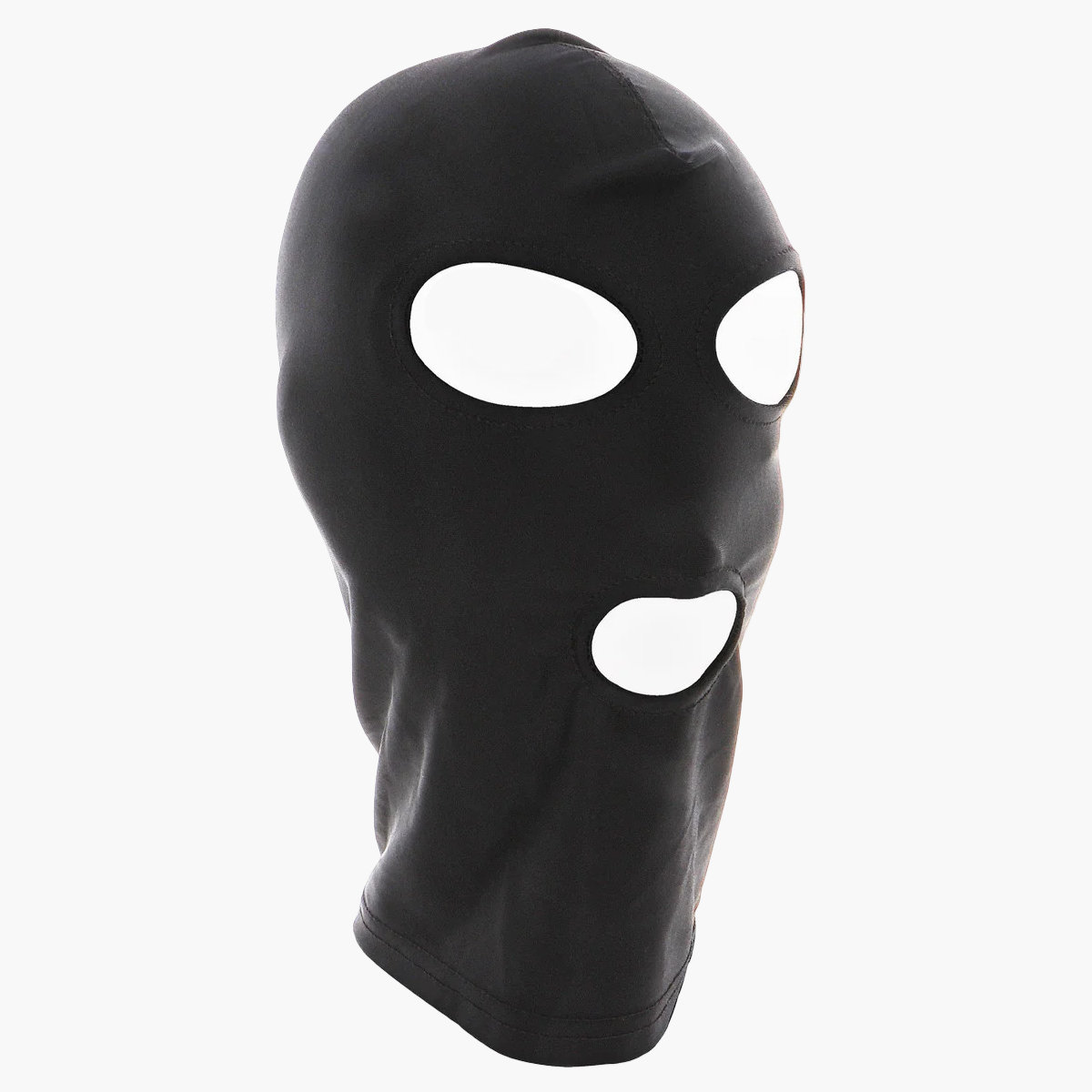 The Taboom spandex hood fits snugly without constricting, anonymously shaping your face and making you the object of desire. The stretchy fabric clings to you softly yet securely. The openings for the eyes and mouth enhance the mysterious look and give you or your submissive just the right balance of vision, breathing, and usability for all kinds of kinky play.