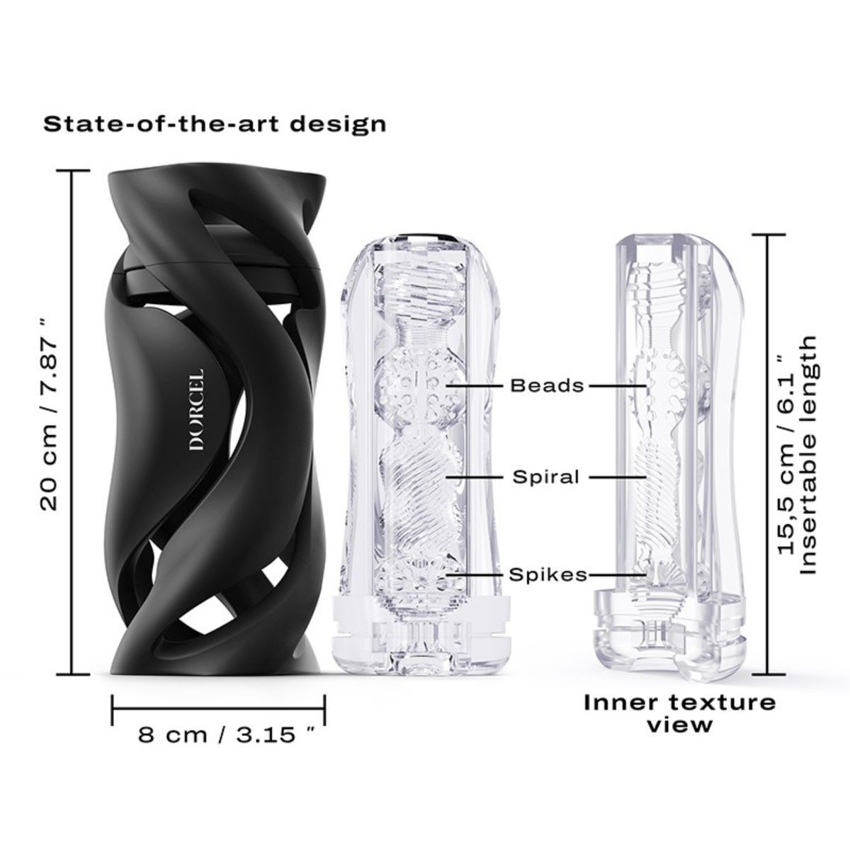 Get ready for an intense experience - the spacey Dorcel Deep Blow masturbator in black will blow you away! With its smooth, ergonomic housing, it fits perfectly in your hand and lets you enjoy full control. The ultra-elastic, soft sleeve adjusts perfectly to your size and ensures a comfortable, individually adjustable experience.