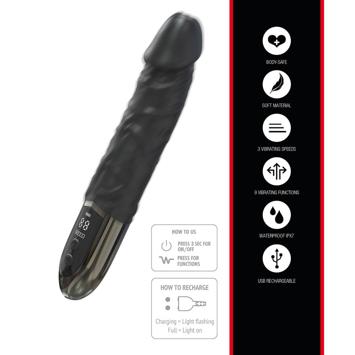 Let yourself be pampered again and again by 9 vibration patterns in 3 different speed levels and experience orgasms in which one is hotter than the other! The extra-smooth surface ensures particularly easy insertion and the veiny structure will stimulate you particularly intensively.