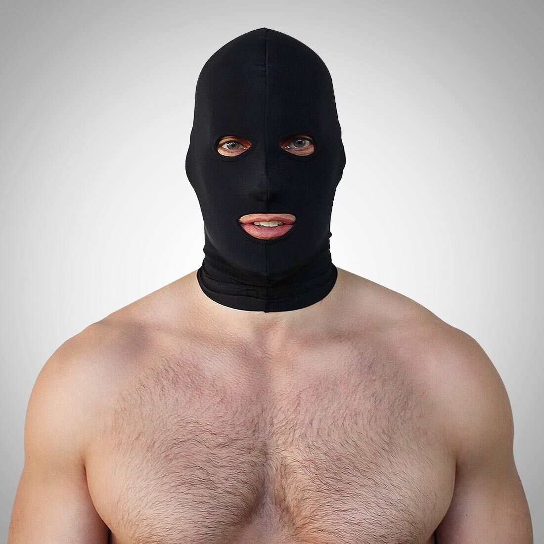 It gives a wonderful confined feeling; your head is comfortably encased in this black material, without being so heavy and extreme as full rubber or leather hoods are.