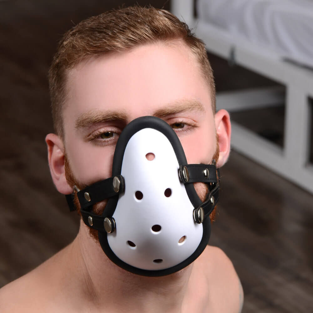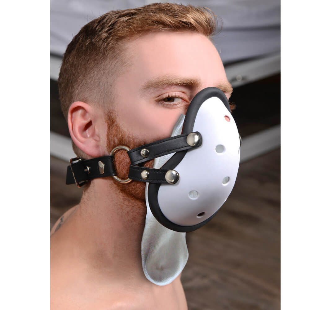 If your play partner can't get enough of the powerful smell of your sweaty groin area or your hot socks, just give them to him in the muzzle!