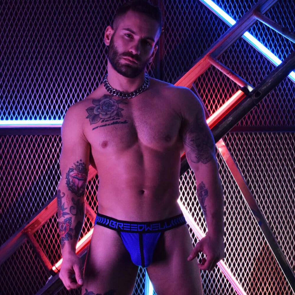 This blue jockstrap will surely make you the center of all the attention. The silicone waistband adapts perfectly and smoothly to your body, while the fabric shows off your best piece! Under UV and black light, the bright colors begin to shine particularly brightly! A real eye-catcher at every party!