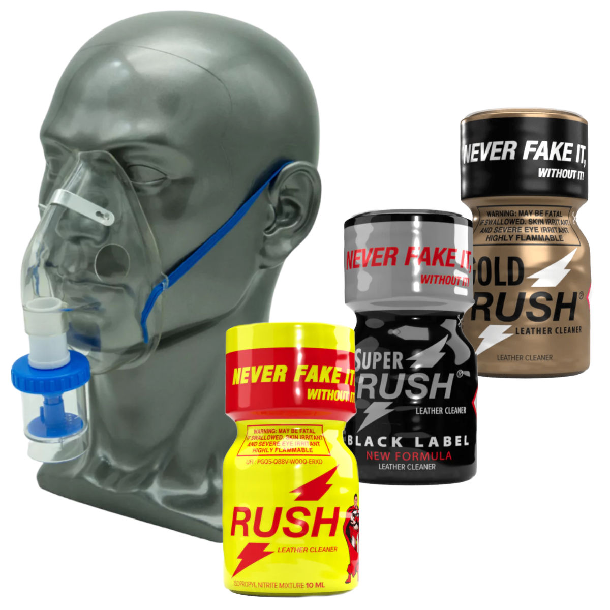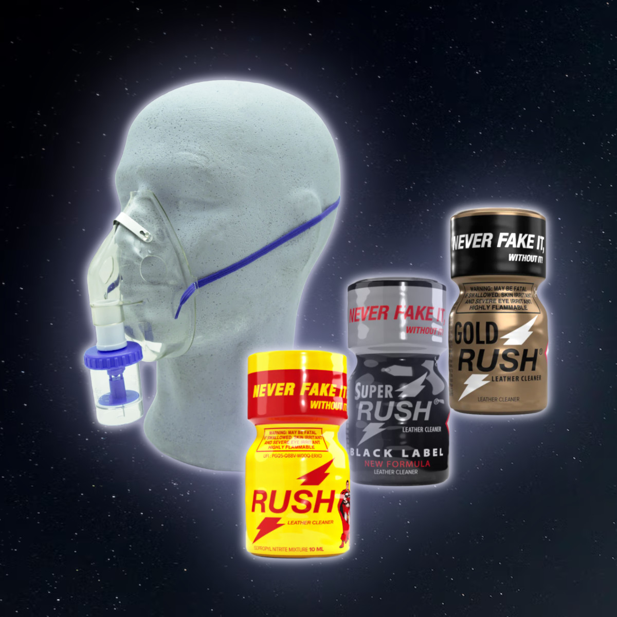 Note: Such masks must be replaced regularly at longer intervals depending on use, as the plastic of the container can be attacked by direct contact with liquid poppers.