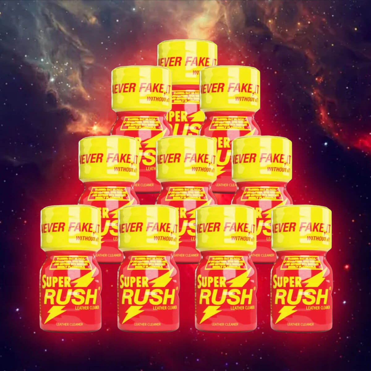 SUPER RUSH RED - The power poppers from the legendary RUSH family! We know you love horny and kinky moments, that's why we have something very special for you to sniff. With this pack, we offer you intense horny moments for a small price. With our savings pack, consisting of 10 bottles, you have everything you need to indulge in your kinkiest fantasies all night long!