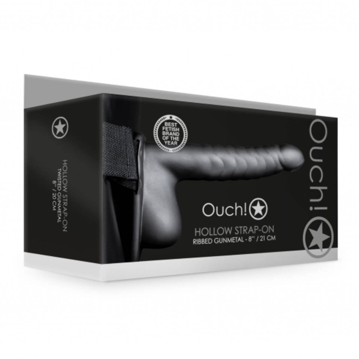 Give your partner the orgasm of a lifetime with this hot strap-on in a spacy gun-metal color! It has a ribbed structure and will guarantee extremely intense stimulation. But also the person wearing the strap-on will have hours of pleaseure, because the strap-on with its 3.5 cm inner diameter and an inner length of 20 cm nestles really tightly around the cock!