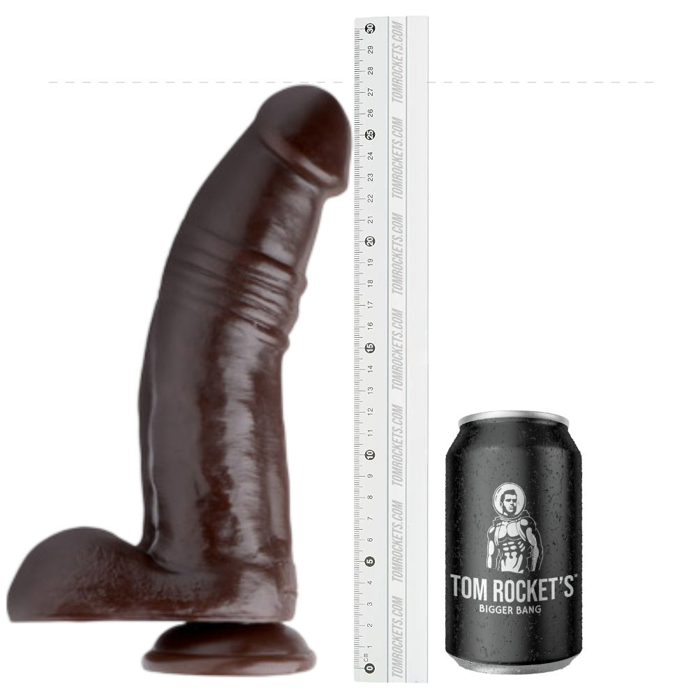 This beautiful dark cock with big balls and retracted foreskin will spoil you extremely! With its 22 cm insertion length and an advanced diameter of up to 5.9 cm, it is not too oversized, but the perfect toy for everyone who likes big cocks but still wants to stay within the realistic range.