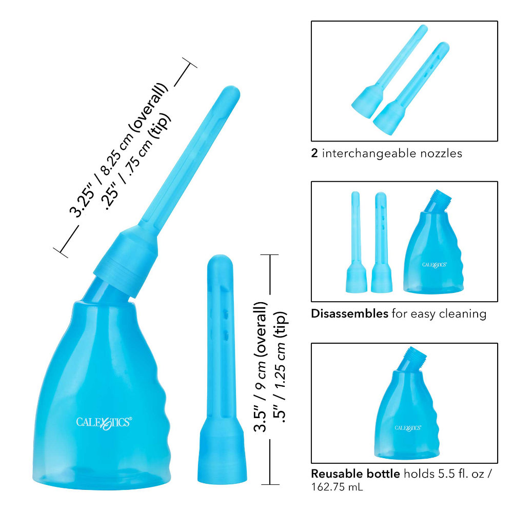The Ultimate Douche is extremely compact and practical, so you can easily take it with you whatever your destination may be. The douche consists of a transparent plastic body in blue with a screw cap and 2 associated attachments that can be exchanged as needed. The Ultimate Douche is also great for inserting lubricant!