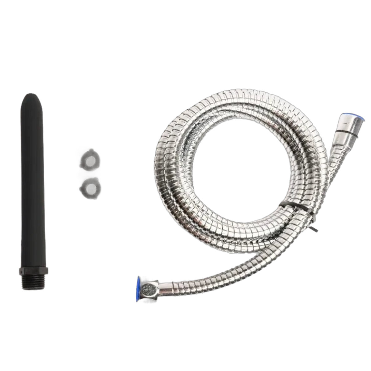 The ultra-soft 15 cm nozzle made of black silicone can be easily inserted with a little lubricant. Due to the flexible material the nozzle is able to hug your anatomy, so you don't have to worry about any injuries. With the included hose and valves, you have everything you need to get started no matter when and where!