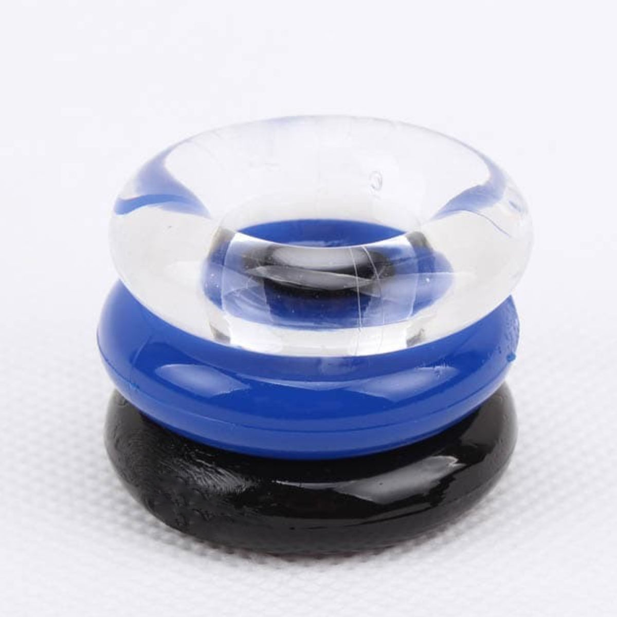 These three donut rings in blue, black and clear are simple but extremely effective. You can use them as a cock ring, ball stretcher or in combination. Thanks to the very elastic TPE material, these penis rings can be slipped over almost all penis sizes!