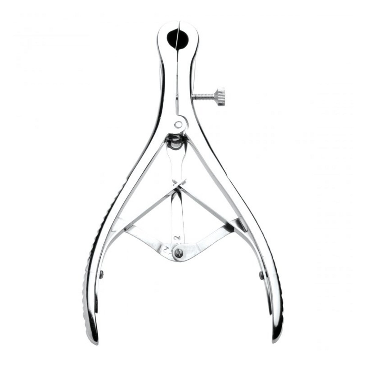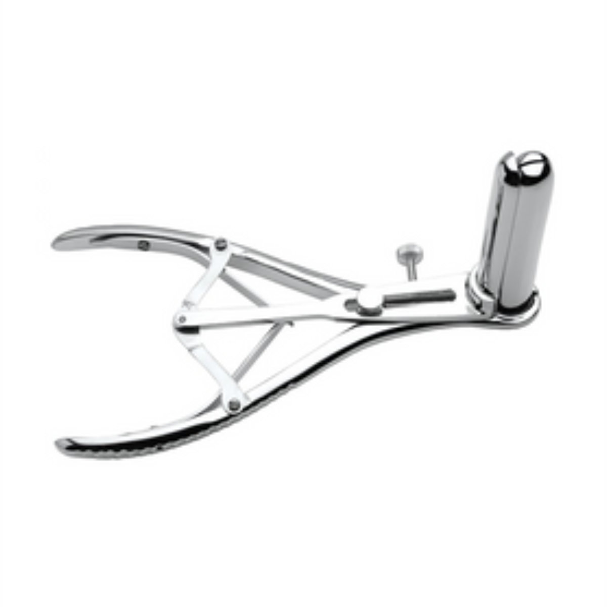 Das Speculum hat 3 Finger, die sich gleichmäßig ausdehnen und sich dank der Schrauben stufenlos arretieren lassen. Im geschlossenen Zustand hat es einen Durchmesser von 3,8 cm und gespreizt bis zu 6,3 cm.