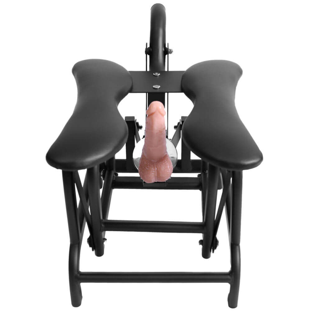 Schwing Dich auf dieses geile Möbelstück und reite los! Die Oberschenkelauflagen sind angenehm weich und dick gepolstert und laden zu stundenlangen Ausritten ein. Der mitgelieferte Dildo lässt sich dank des Gewindes fest anschrauben, sodass auch der härteste Ritt sicher vonstatten geht.