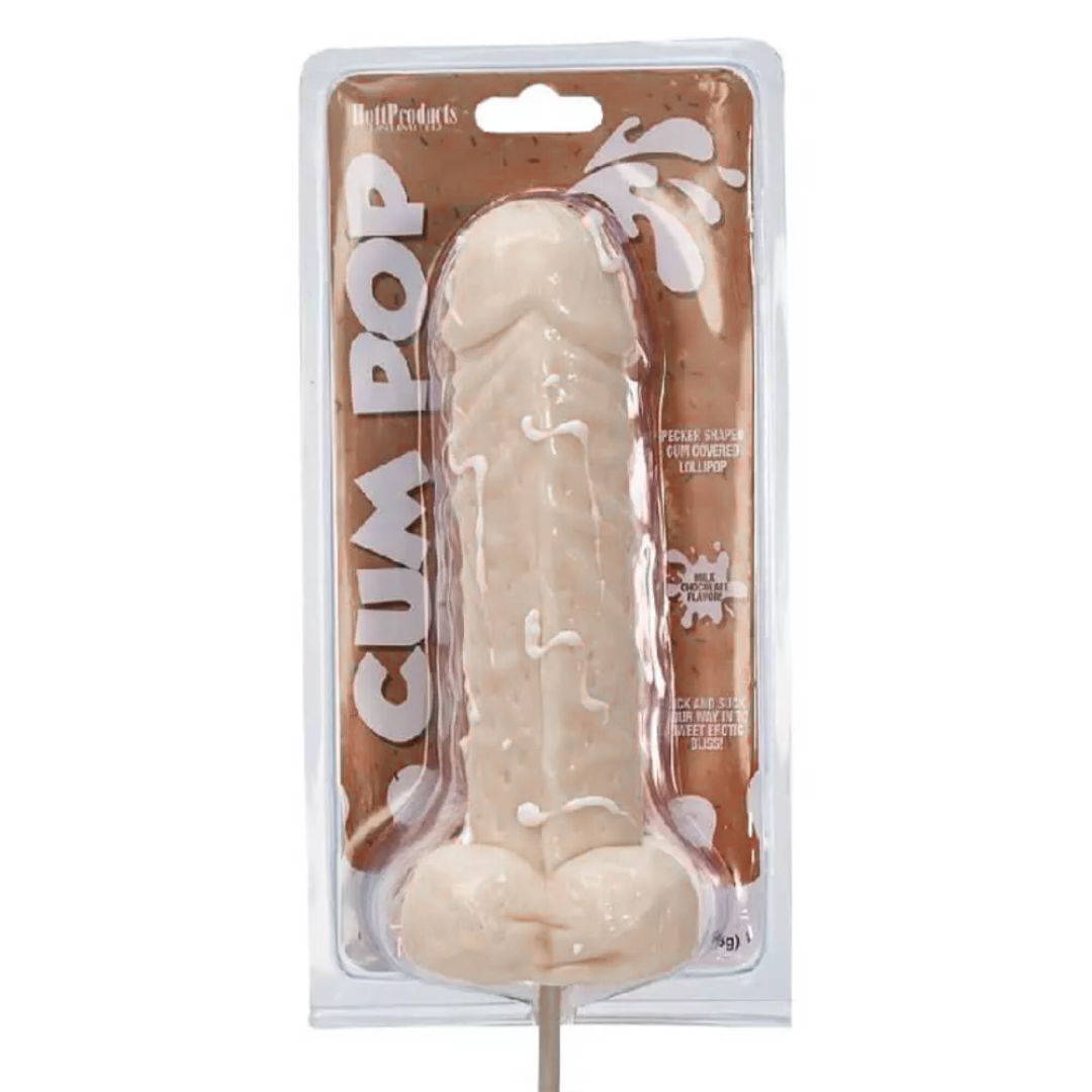 Mit diesem geilen Dauerlutscher in Schwanzform kannst Du Deine Zunge auf Reisen schicken und auch deine Deep Throat Skills perfektionieren! Der große Lolli ist mit reichlich Cum verziert und schmeckt herrlich nach zarter Milchschokolade.