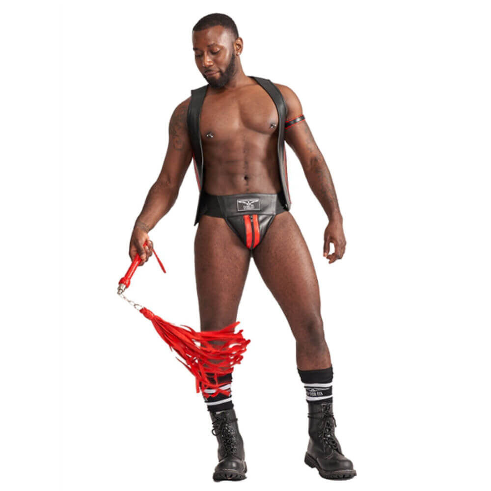 Der Flogger von Mister B in heißem Rot eignet sich nicht nur hervorragend, um Deinen Sub zu versohlen, sondern wertet zusätzlich auch jedes Fetisch-Outfit auf! Der Clou ist die Kette und das Drehgelenk, das eine angenehme und handgelenkschonende Bestrafung ermöglicht, die Stunden dauern kann!