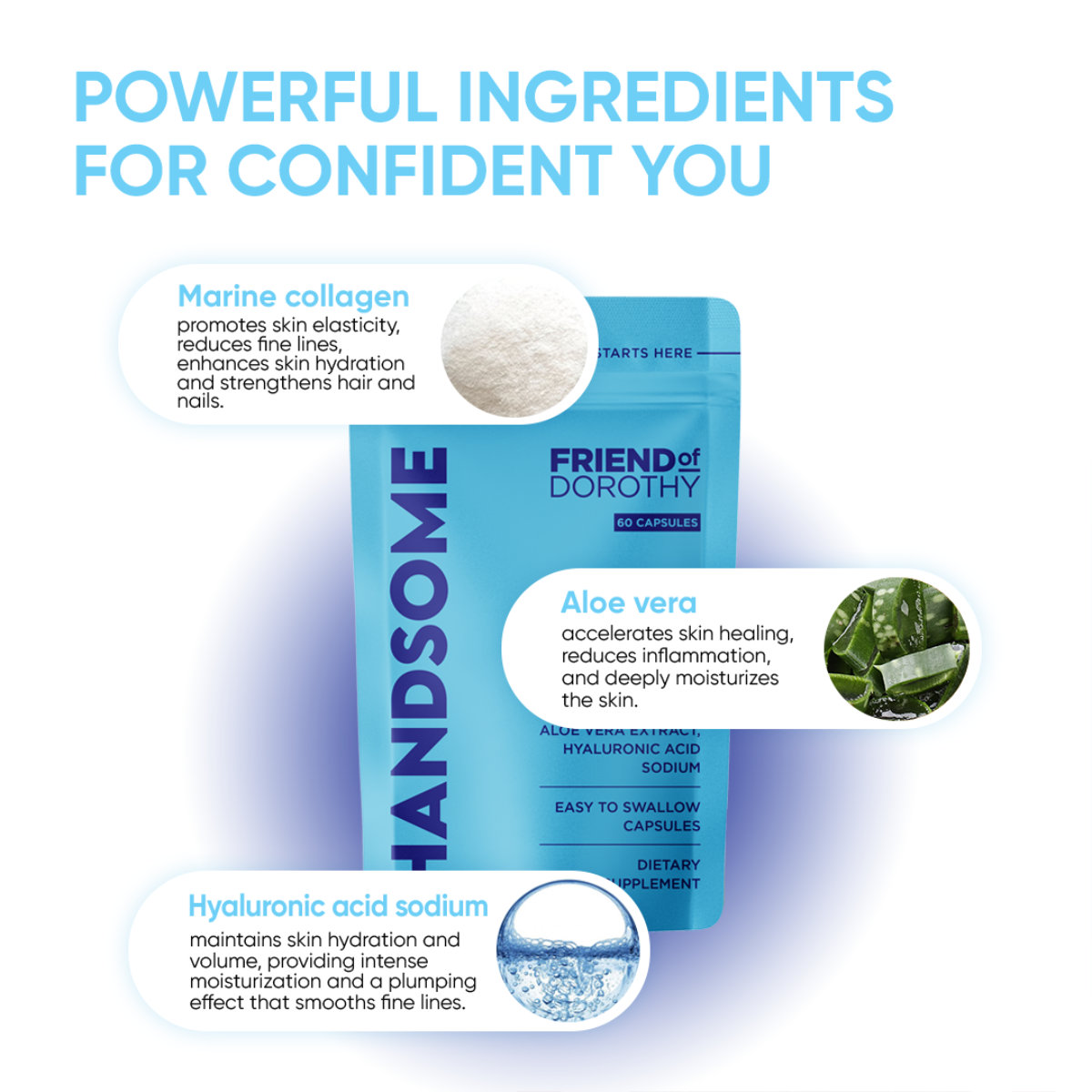Falten? Trockene Haut? Müdere Vibes als du eigentlich bist? Schluss damit! Mit Handsome holst du dir deinen Glow zurück – straffe Haut, frischer Teint, sexy Ausstrahlung. Dieses Anti-Aging-Supplement wurde speziell für schwule Männer entwickelt, die nicht nur jung aussehen wollen, sondern auch so wirken – von innen heraus.