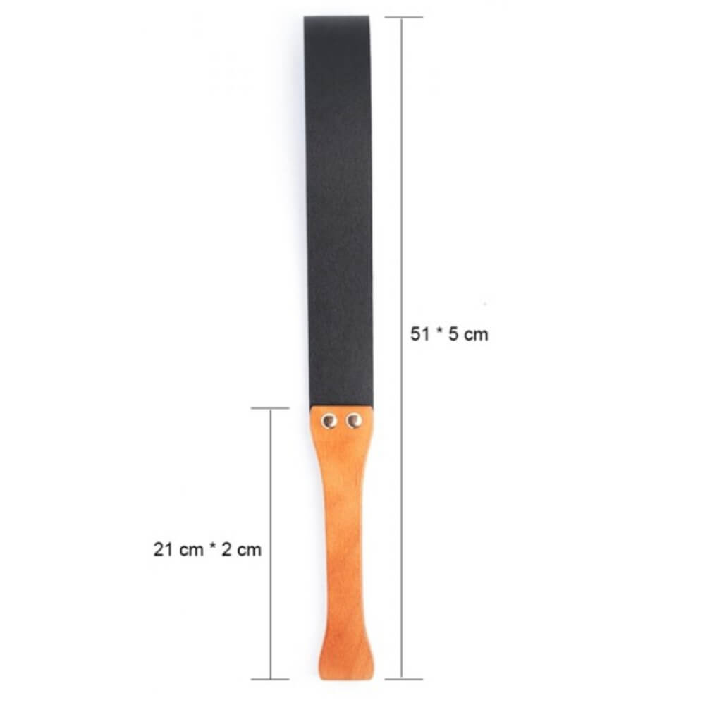 Ein absolutes Spanking Basic mit praktischen Abmessungen (Gesamtlänge 50 cm, Lederschlaufe 30 cm), das in keinem BDSM-Repertoire fehlen darf!