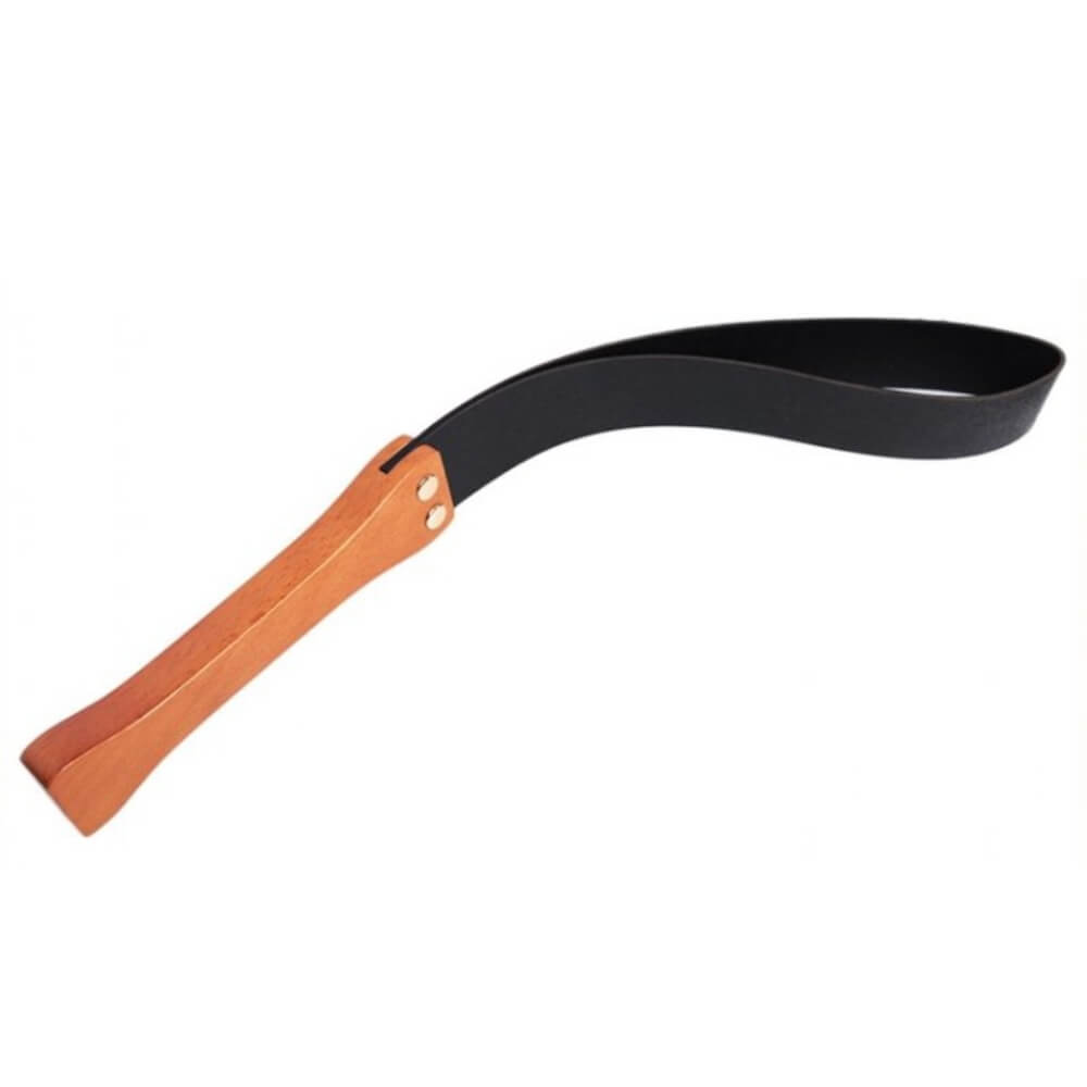 Eine breite Lederschlaufe und ein klassischer Holzgriff bilden dieses clevere Paddel, und wenn Du es richtig anwendest, hörst Du es gleich zweimal Klatschen.