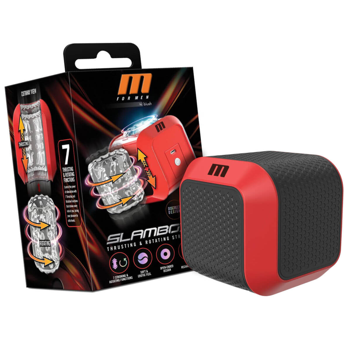 Dieser kraftvolle, automatische Masturbator ist nichts für Zartbesaitete. Verpackt in einer stylishen, diskreten roten Box wartet pure Lust auf Knopfdruck – rotierend, stoßend, vibrierend. Mit 7 intensiven Stoßmodi und einer 360°-Drehbewegung massiert die Slambox jeden Zentimeter deines Schwanzes und bringt dich Runde für Runde näher an den ultimativen Höhepunkt.