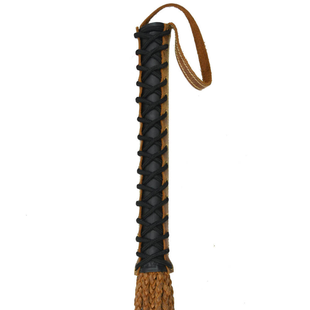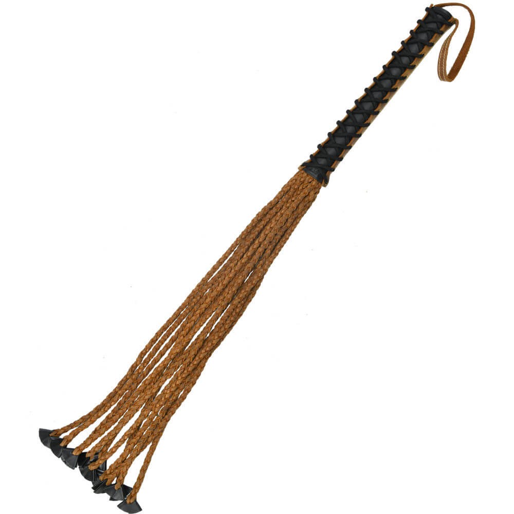 Die mehrschwänzige Meister Gladiatorenpeitsche hat eine Gesamtlänge von 84 cm und besteht aus geflochtenen Strängen, welche sicherlich ein Zeichen auf dem Körper Deines Eigentums hinterlassen werden!