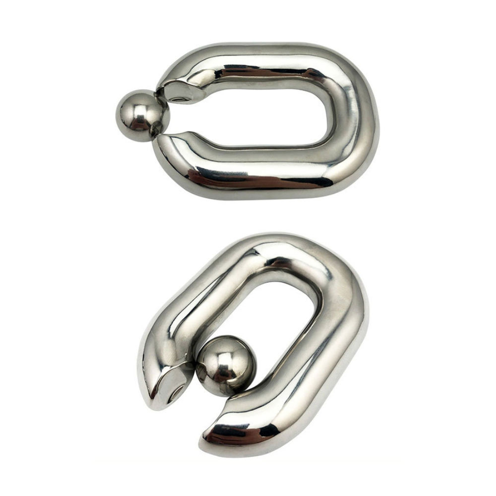 Der ovale Ballstretcher besteht aus hochwertigem Edelstahl und kommt in zwei verschiedenen Größen, die Deinen Eiern das Gesetz der Schwerkraft auf harte Weise vorführen! Ganz praktisch ist auch die magnetische Kugel, die äußerst behilflich ist beim An- und Ausziehen des Toys!