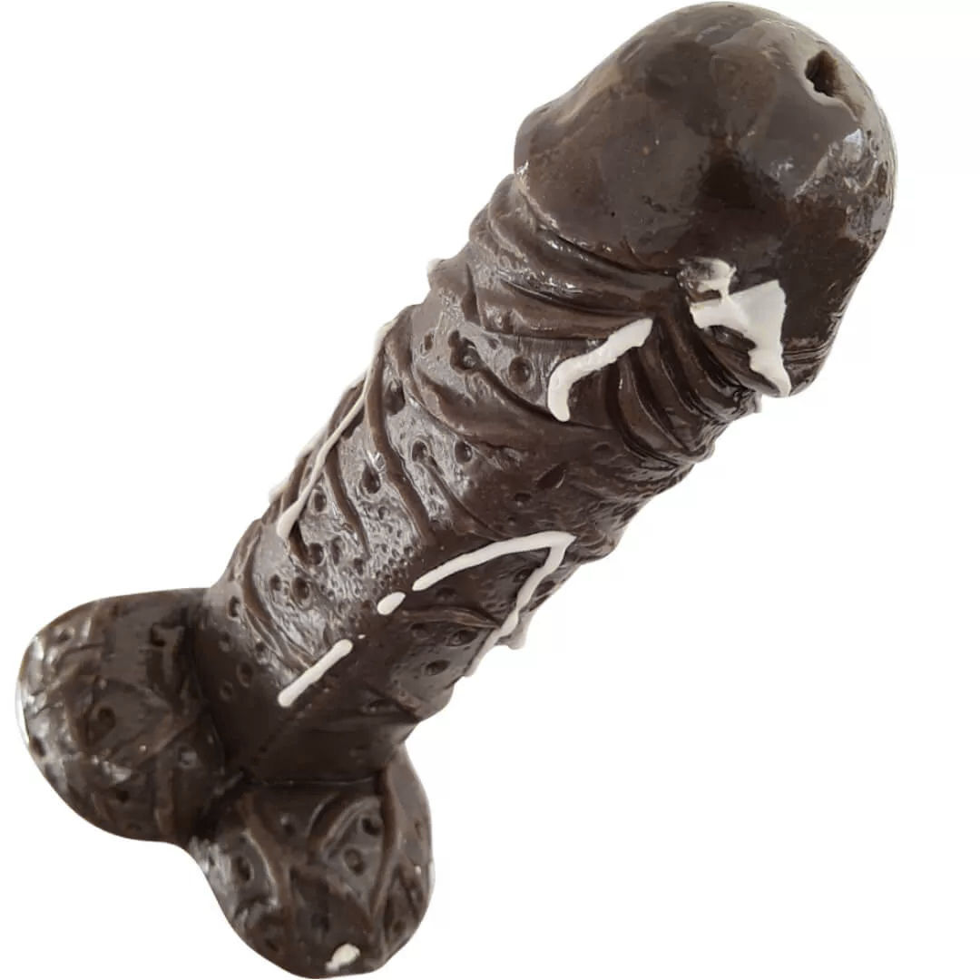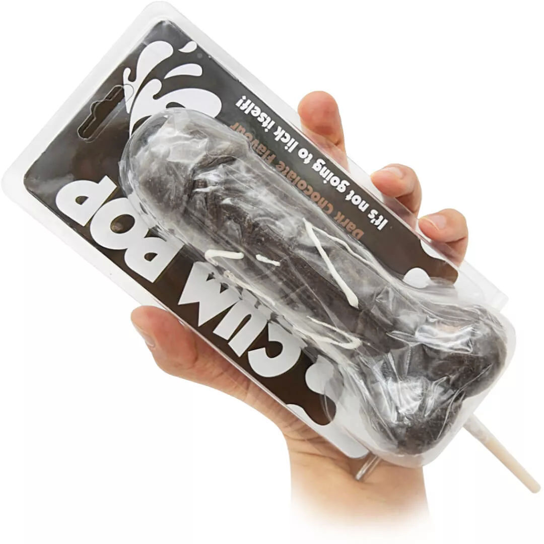 Mit diesem geilen Dauerlutscher in Schwanzform kannst Du Deine Zunge auf Reisen schicken und auch deine Deep Throat Skills perfektionieren! Der große Lolli ist mit reichlich Cum verziert und schmeckt herrlich nach dunkler Schokolade.
