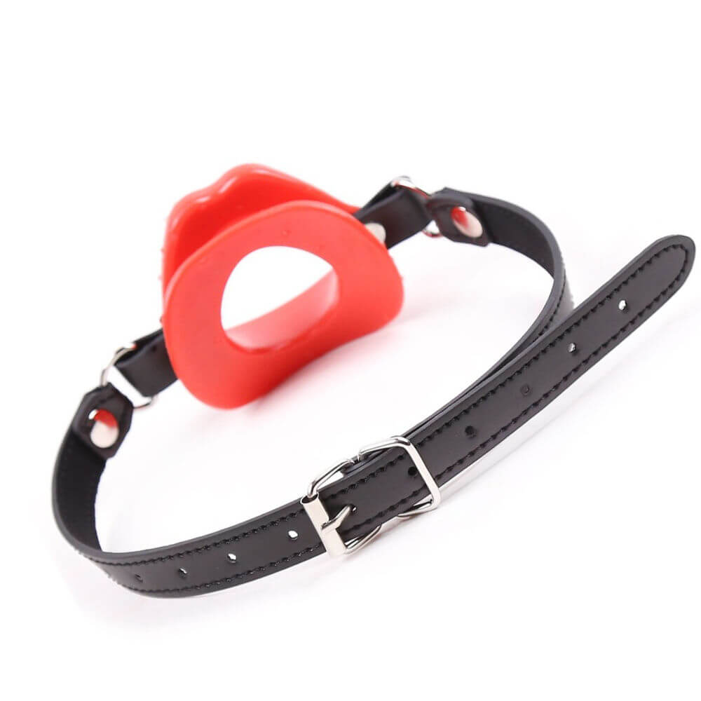Stopf den Knebel mit den roten Lippen in den Mund Deines Subs, entweder hinter die Zähne oder direkt hinter die Lippen. Der Mund wird schön offen gehalten, sodass Du den vollen Zugang hast und das F**kmaul nach belieben stopfen kannst!