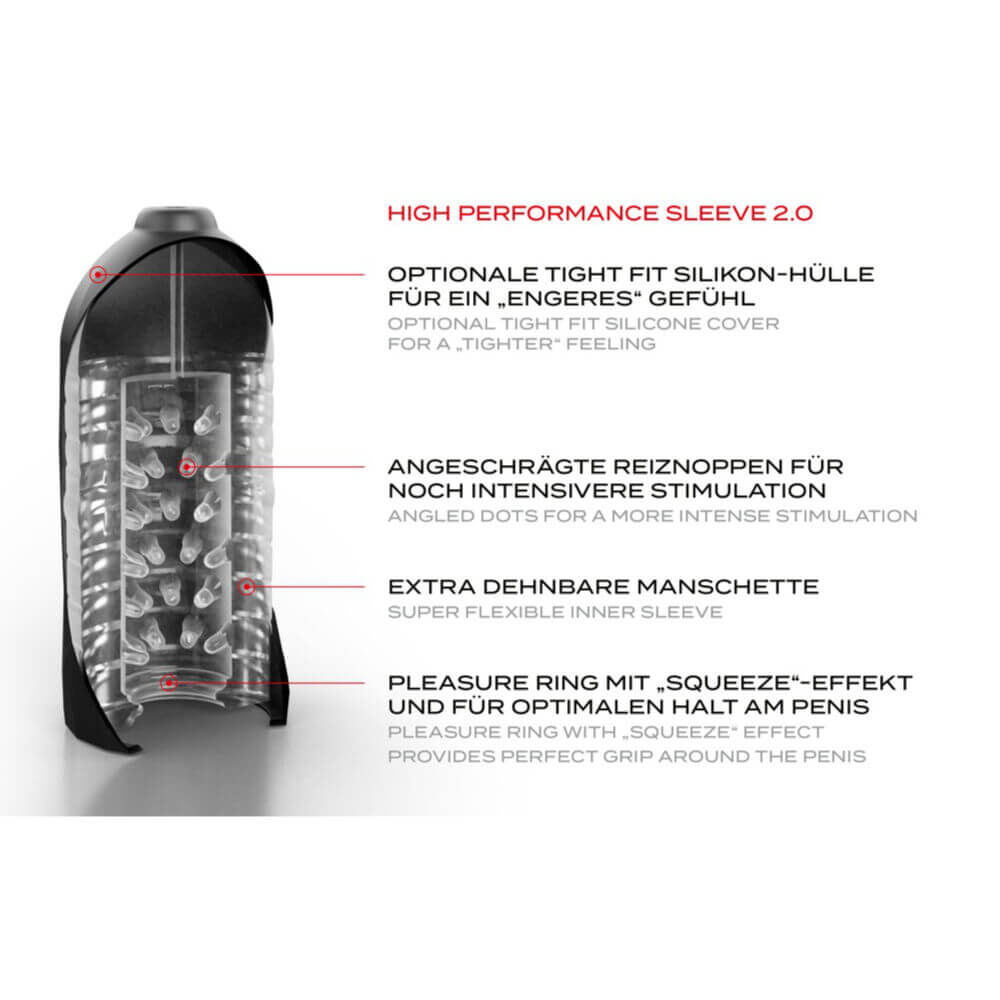 Das Sleeve lässt sich mit der beiliegenden Tight Fit Manschette kombinieren, die für einen noch festeren Sitz und so eine noch geilere Stimulation sorgt.
