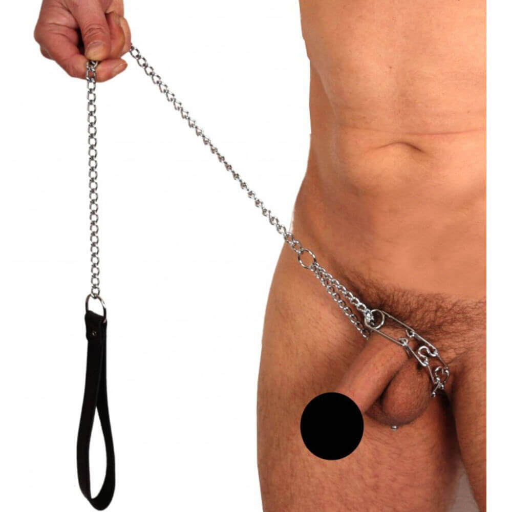 Sorge dafür, dass Dein Devoter dicht bei seinem Herrn bleibt mit diesem abgefahrenen Set bestehend aus Würge-Peniskette und Kettenleine mit Ledergriff.