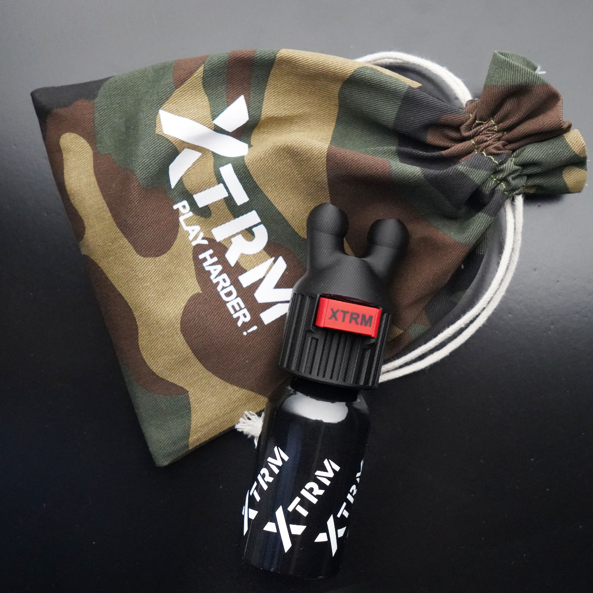 Das XTRM Double Sniffer Set besteht aus einer bruchsicheren 60 ml Aluminiumflasche, in der du dein Lieblings-Poppers einfüllen kannst, einem Aufsatz mit zwei Öffnungen für beide Nasenlöcher und noch dazu einem Standfuß, sodass dein Poppers immer sicher steht, wenn du zwischendurch mal eine Atempause brauchst.
