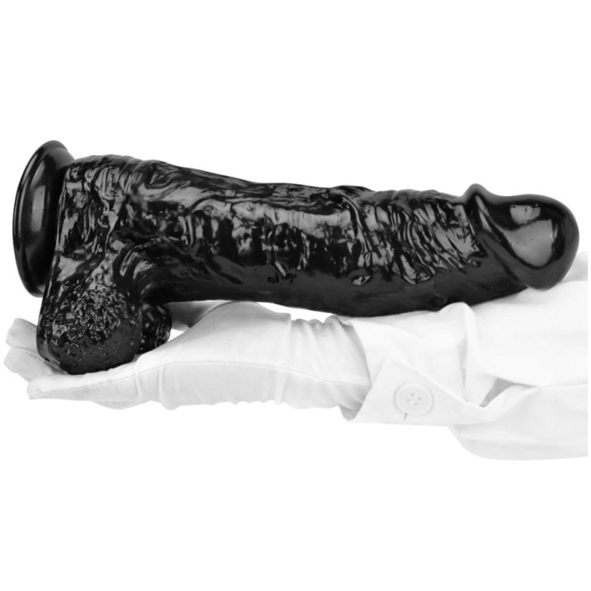 Dieser Dildo ist aus strapzierfähigem, phtalatfreiem PVC hergestellt und hat einen kräftigen Saufuß für freihändiges Date mit dem Riesenschwanz.