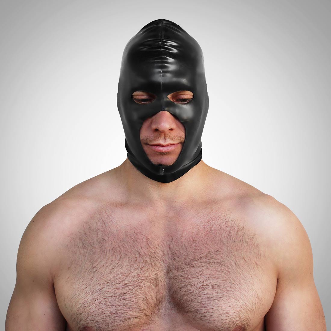 Datex ist ein Doppelschichtmaterial , bestehend aus einer Trägerschicht aus dehnbarem Polyester / Elastan mit einer Deckschicht aus 100% Naturlatex mit glänzender Oberfläche. Es hat das Aussehen von Gummi, kann aber genäht werden und ist nicht so empfindlich wie Gummi. Ein weiterer Vorteil ist, dass die Maske ohne Hilfe von Talkumpuder oder Silikonen verwendet erden kann.