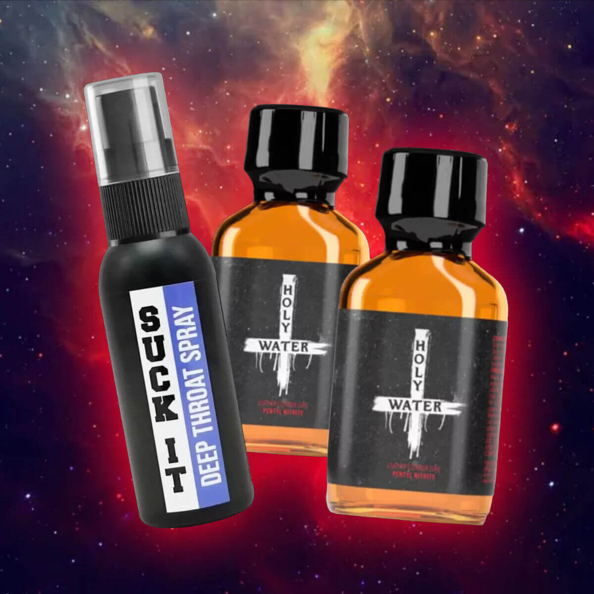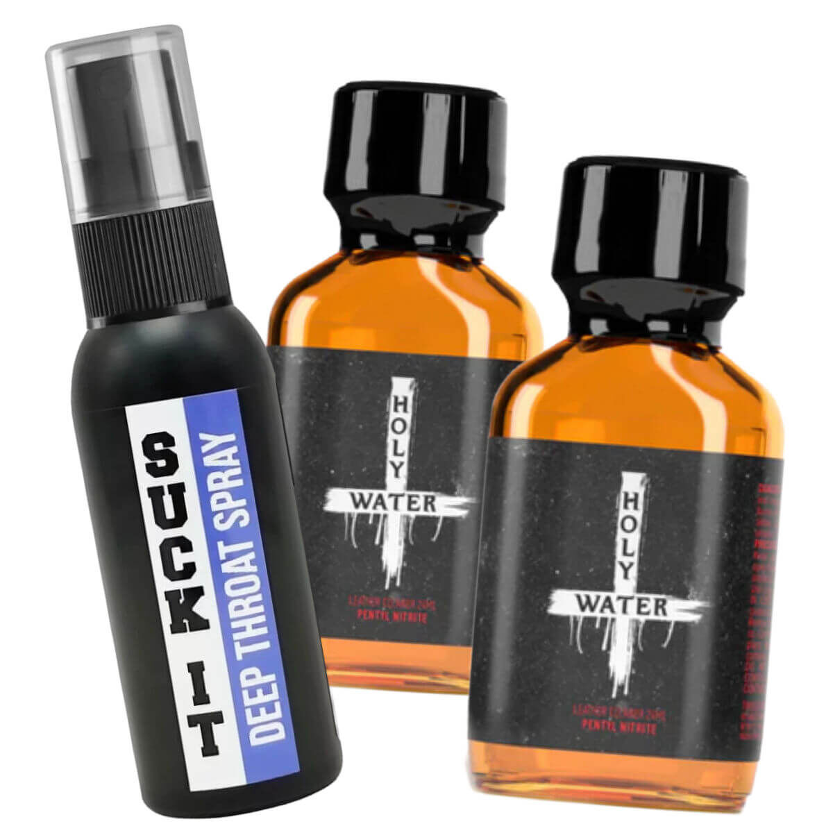 Besänftige deinen inneren saugfreudigen Vampir mit einem tiefen Sniff an dem enthemmenden Holy Water. In Kombination mit unserem erstklassigen Deepthroat Spray wirst du deinem Partner die ganze Nacht zeigen, dass du ein regelrechter Zungenakrobat bist! Und wenn die Session noch intensiver werden sollte haben wir zusätzlich noch ein weiteres Holy Water hinzugefügt, sodass du auch den letzten Tropfen Cum aufsaugen kannst!