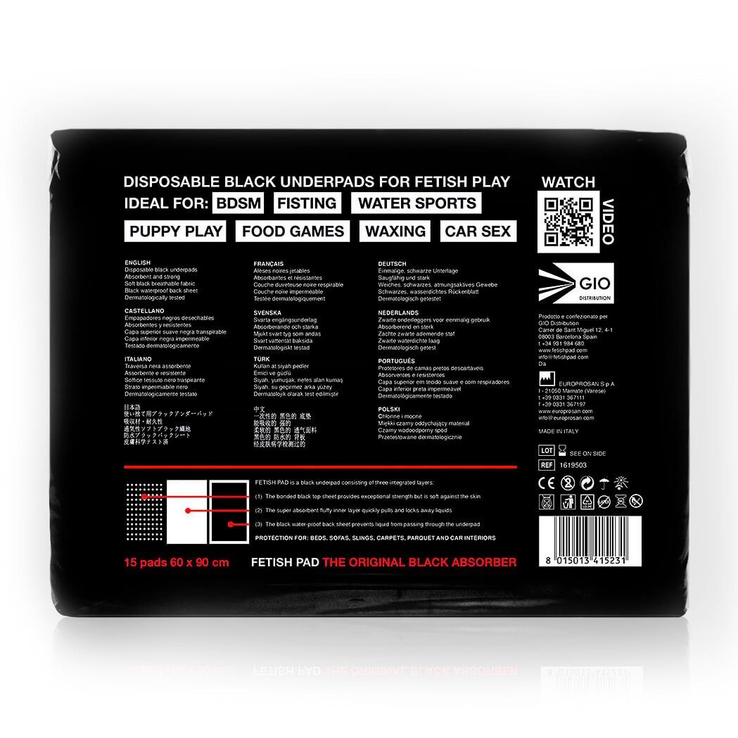 Eine Packung FETISH PAD enthält 15 individuelle schwarze Unterlagen, die jeweils 60 x 90 cm groß sind. Es schützt Möbel und Fahrzeuginnenräume. Es spart eine Menge Zeit, die Du nach einer Session brauchen würdest- einfach zusammenklappen und wegwerfen. Es sieht gut aus und unterstreicht das Aussehen deines Apartmens im Gegensatz zu dem unattraktiven klinischen Erscheinungsbild gewöhnlicher weißer Unterlagen. Es ist leicht und tragbar, ideal zum Spielen und für Hotelzimmer.