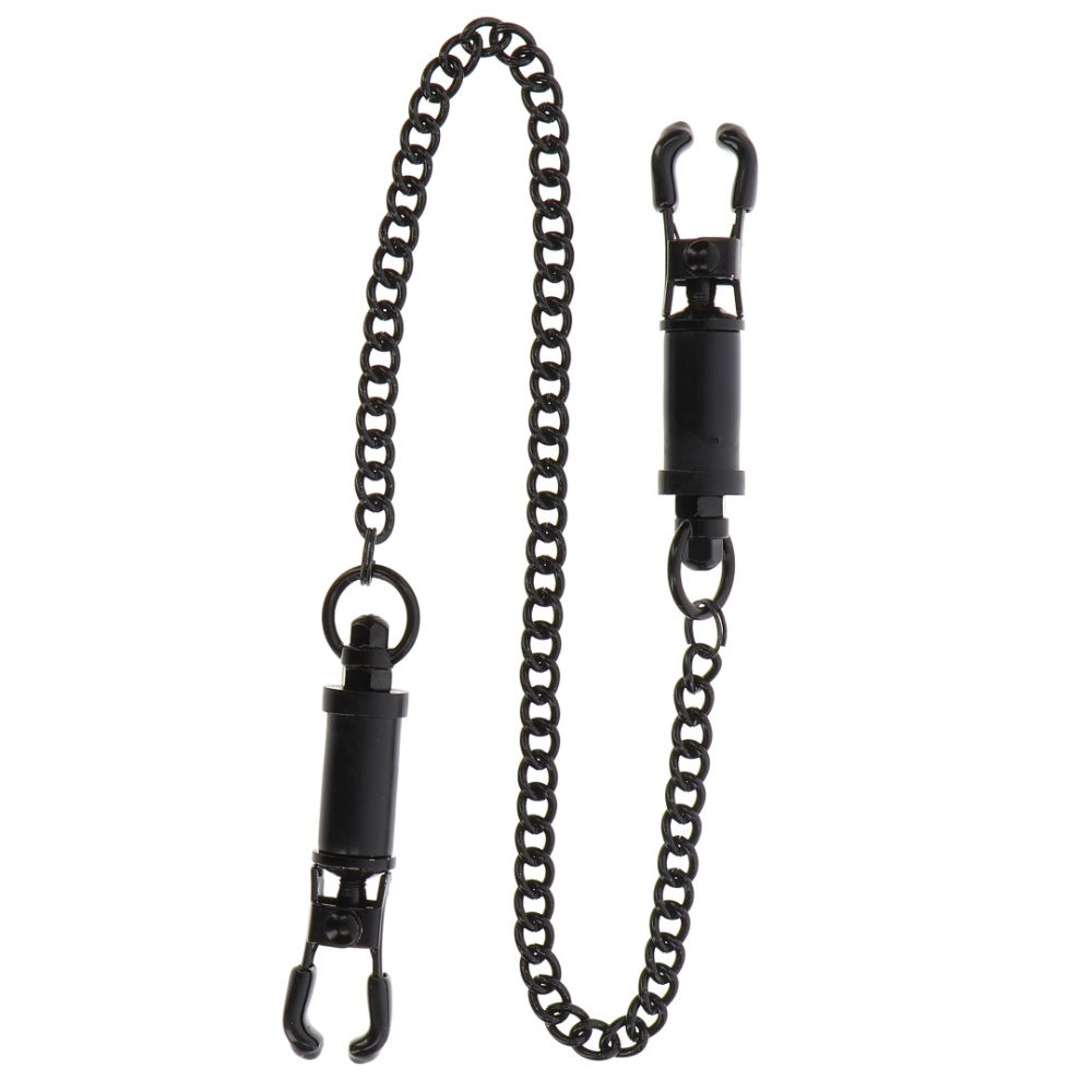 Sexy Facts ✔ Zwei Nippelklemmen im Set ✔ Mit Kette und leichtem Gewicht ✔ Mit Schrauben zum Einstellen ✔ Mattschwarzes Metall ✔ Gewicht: ca. 80 Gramm