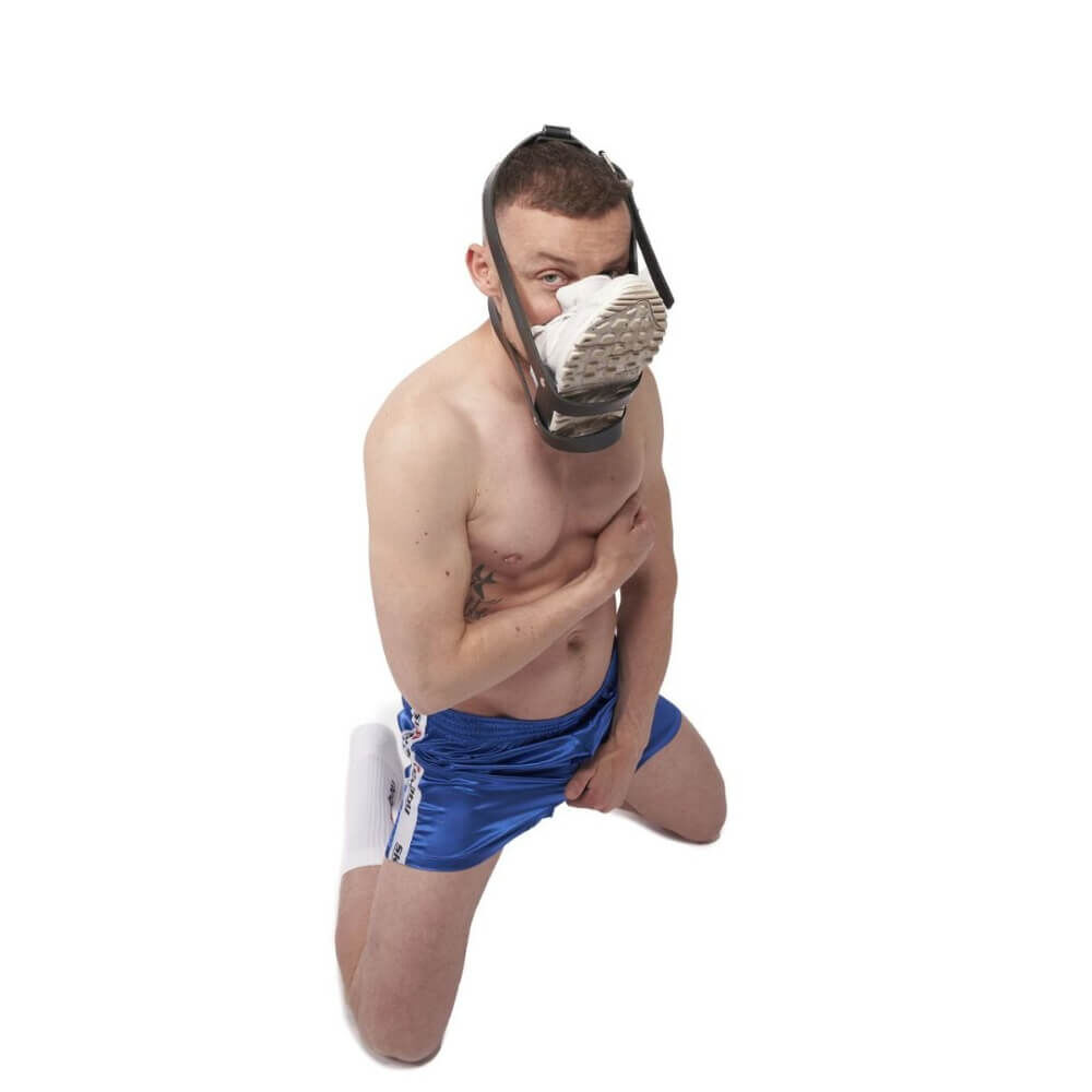 Diese Maske wurde aus weichem, robustem schwarzen Leder gefertigt. Der Sneaker lässt sich mittels Druckknöpfen an dem Harness leicht befestigen und nach Belieben abnehmen, wenn Dein Diener mal eine Pause verdient! Jede Sneakergrösse kann leicht an dem Harness befestigt werden, da er sehr einfach verstellbar ist.