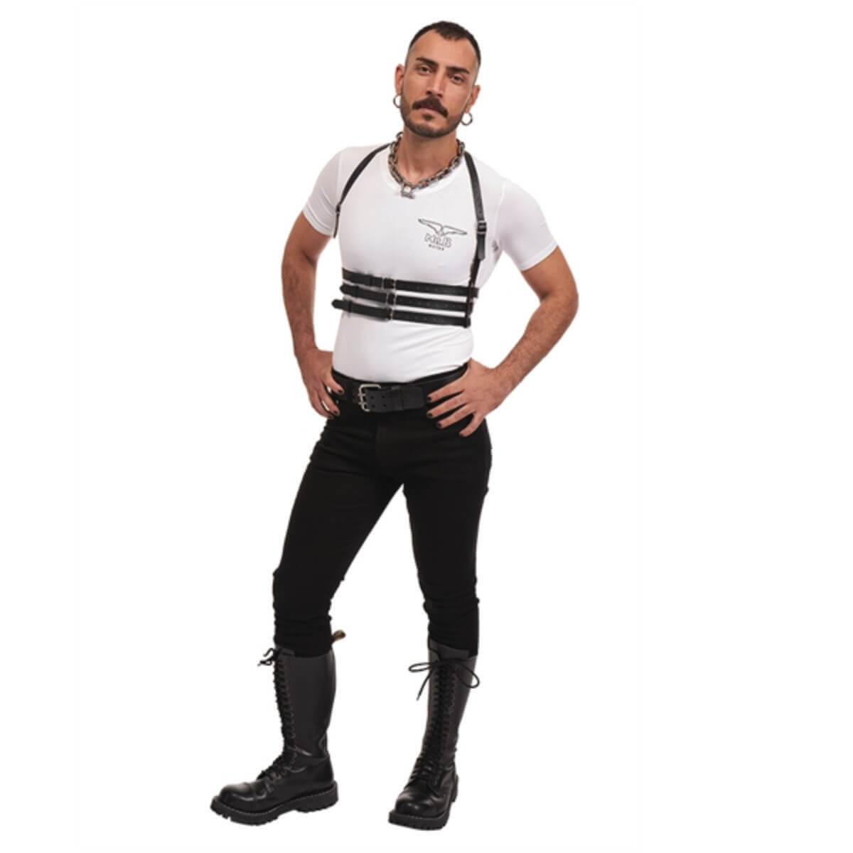 Aus hochwertigem Echtleder gefertigt ist der Style Harness das perfekte Accessoire, um Deinen Fetisch-Klamottenschrank aufzupeppen und Dich auf Deinen nächsten feuchten Abenteuern zu begleiten!