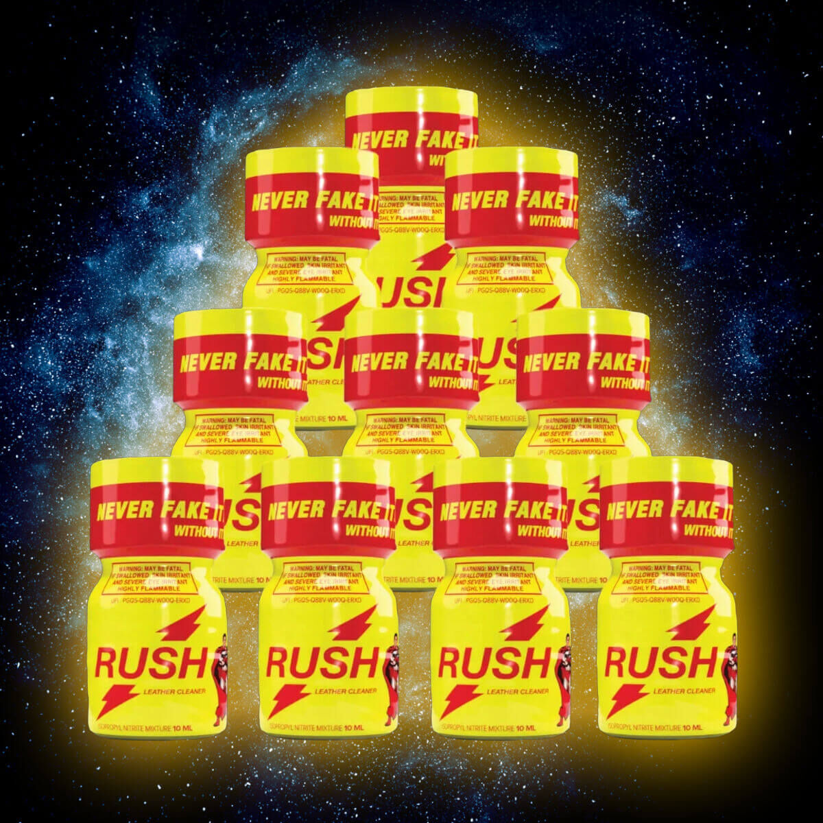 Mit über zehn Millionen verkauften Flaschen in der ganzen Welt, Tendenz steigend, können wir zweifelsohne behaupten, dass das RUSH® Aroma die absolute Nr.1 jenseits der Milchstraße ist! Wir bieten dir verdammt geile Momente zum kleinen Preis. Mit unserem 10er-Pack, hast du alles, was du brauchst, um die ganze Nacht hindurch deinen versautesten Fantasien nachzugehen